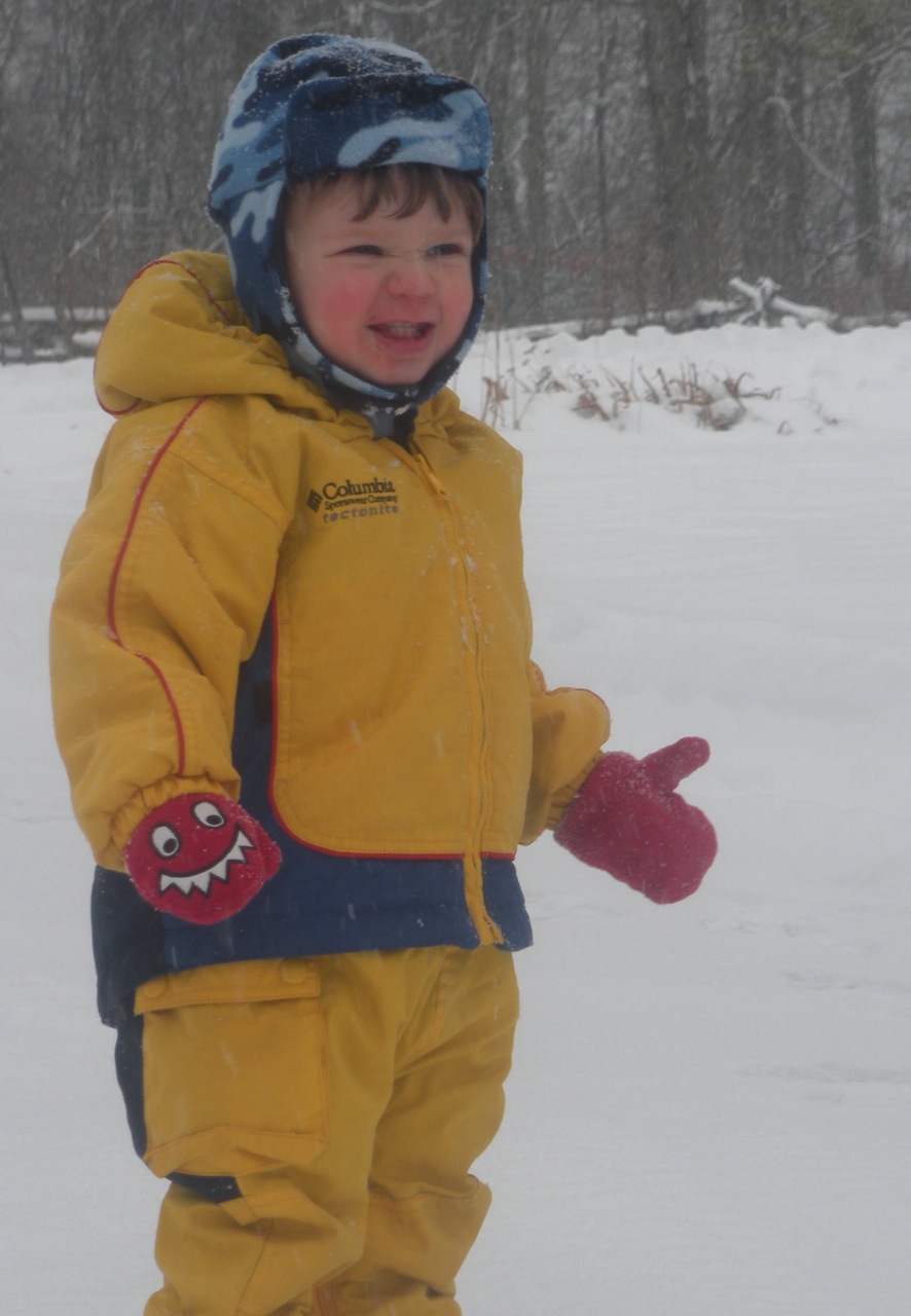 The snow’s upon the Alleghenies and the view from the window is monochrome again, thanks to the eight inches that fell yesterday. Last winter was Abe’s first, of course, but this one may as well be, considering how excited he gets with every flake he sees. Here’s hoping he becomes a skier, because his parents are going to be making him do a lot of it.